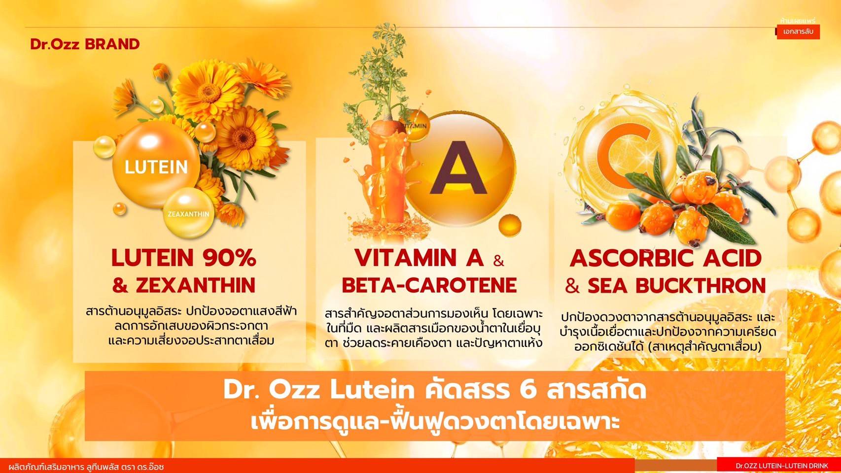 DR.OZZ LUTEIN (ดร.อ๊อซ ลูทีน) : ลูทีนเข้มข้น พลัสวิตามิน คืนความคมชัด ปกป้องดวงตาจากแสงสีฟ้า